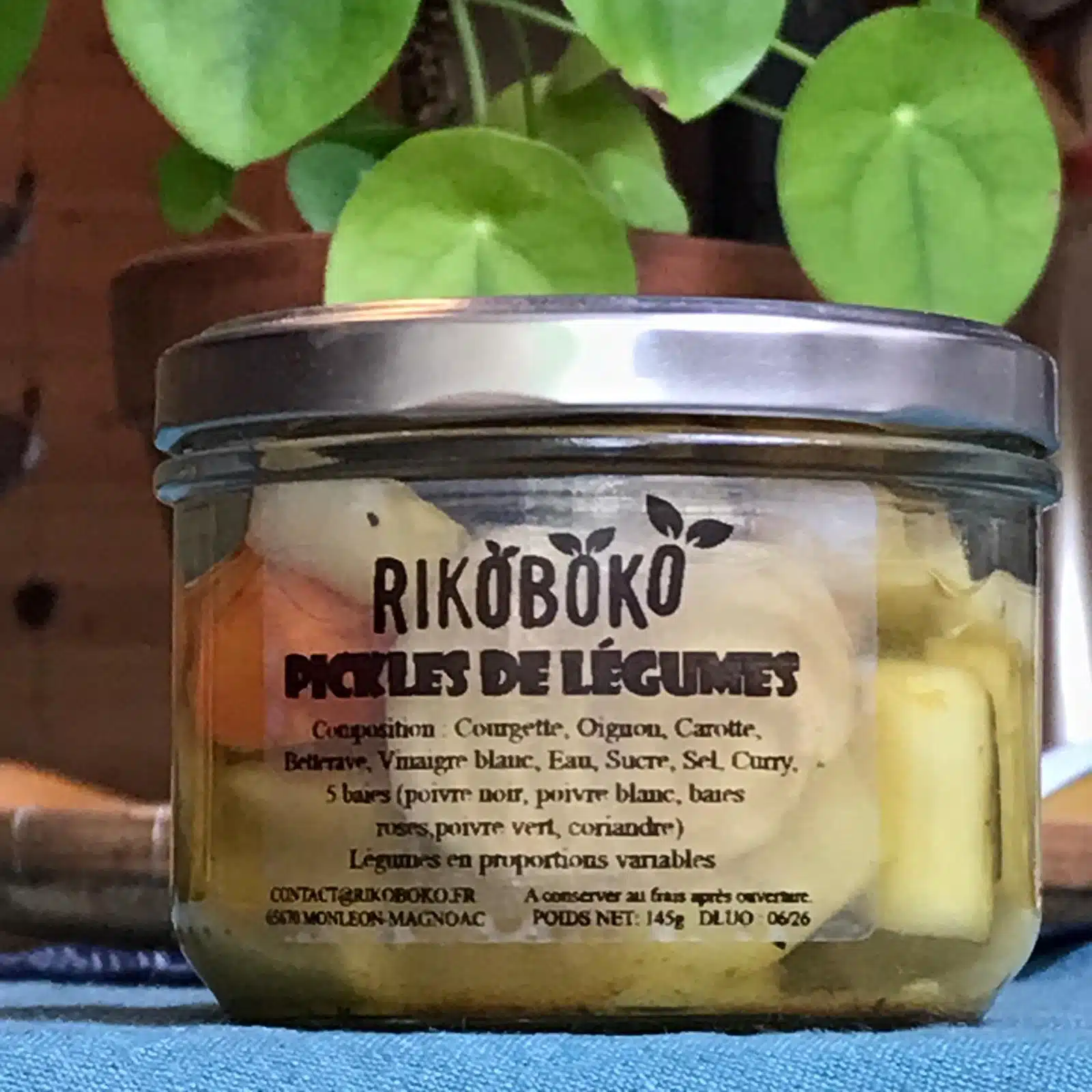 Des pickles aigres doux, croquants et pleins de saveurs, préparés avec des légumes d’été locaux. Cette année la carotte a remplacé le poivron faute de récolte ! Une recette familiale qui fut une des premières à voir le jour chez RIKOBOKO !